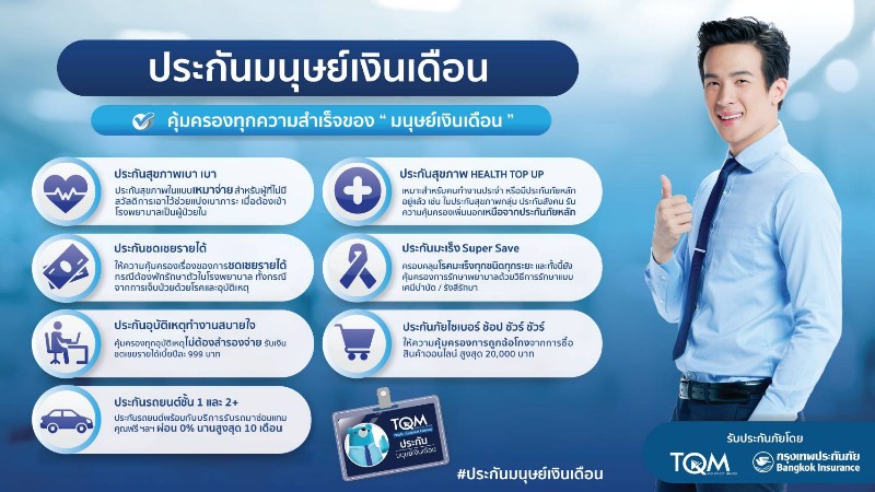 ดร.อภิสิทธิ์ อนันตนาถรัตน ประธานคณะผู้บริหารและกรรมการผู้อำนวยการใหญ่ บมจ.กรุงเทพประกันภัย กล่าวว่า “กรุงเทพประกันภัย (BKI) และ TQM มีความคิดเห็นตรงกันที่จะสร้างการรับรู้ให้มนุษย์เงินเดือนได้ตระหนักถึงการวางแผนชีวิตเพื่อรองรับความเสี่ยงภัยต่างๆ ที่อาจจะเกิดขึ้น ไม่ว่าจะเป็นความเสี่ยงด้านร่างกาย สุขภาพ หรือการเงิน ทางบริษัทฯ จึงใช้แนวคิดดังกล่าวมาออกแบบความคุ้มครองให้มนุษย์เงินเดือนที่แม้จะมีสวัสดิการของบริษัทหรือหน่วยงานที่ทำงานอยู่ แต่อาจจะไม่ครอบคลุมค่ารักษาพยาบาลที่อาจเกิดขึ้น รวมถึงมนุษย์ฟรีแลนซ์ เจ้าของธุรกิจ SME และผู้ใช้แรงงานที่กลุ่มหลังนี้จะไม่มีสวัสดิการใดๆ เหมือนมนุษย์เงินเดือน”