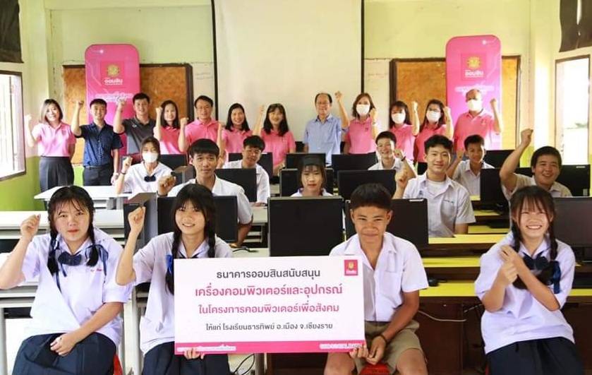 นางสาวสุขดี จรีรัตนชาติ ผู้ช่วยผู้อำนวยการธนาคารออมสิน สายงานปฏิบัติการเทคโนโลยีสารสนเทศ พร้อมด้วยผู้บริหารและคณะ ร่วมส่งมอบคอมพิวเตอร์ และอุปกรณ์ไอที ภายใต้โครงการคอมพิวเตอร์เพื่อสังคม ซึ่งเป็นการนำเครื่องคอมพิวเตอร์ และอุปกรณ์ไอทีต่างๆ ที่ไม่ได้ใช้ในธุรกิจธนาคารแล้ว แต่ยังมีสภาพดีสามารถนำไปใช้งานต่อได้ จำนวน 9,000 เครื่อง ไปส่งมอบให้กับผู้ที่สามารถนำไปใช้ประโยชน์ในการศึกษาหาความรู้แทนการขายทอดตลาด โดยโครงการดังกล่าวเป็นส่วนหนึ่งของแผนบูรณาการภารกิจเพื่อสังคม เข้าในกระบวนการดำเนินงานที่สำคัญของธนาคาร (Social Mission Integration) ตามยุทธศาสตร์ธนาคารเพื่อสังคม และบริหารจัดการเทคโนโลยีดิจิทัลที่เป็นมิตรต่อสิ่งแวดล้อม หรือ Green IT ซึ่งมีกลุ่มเป้าหมายหลัก คือ สถานศึกษา หรือหน่วยงานภาครัฐ องค์การหรือสถานสาธารณกุศลที่ขาดแคลน เพื่อให้เด็กนักเรียนและสถานศึกษาในพื้นที่ห่างไกลได้รับโอกาสในการเข้าถึงเทคโนโลยีอย่างเท่าเทียม โดยได้เริ่มจัดสรรพร้อมส่งมอบให้กับโรงเรียนทางภาคเหนือเป็นพื้นที่แรก ได้แก่ โรงเรียนบ้านเปียงซ้อ และโรงเรียนบ้านห้วยฟอง ซึ่งเป็นโรงเรียนในโครงการ “ออมสินฮ่วมใจ๋ฮักขุนน่าน” ตั้งอยู่ที่ตำบลขุนน่าน อำเภอเฉลิมพระเกียรติ จังหวัดน่าน จำนวนโรงเรียนละ 10 เครื่อง และมอบให้กับโรงเรียนมูลนิธิรุ่งนภาแม่จัน และโรงเรียนธารทิพย์ จังหวัดเชียงราย รวมอีก 25 เครื่อง เมื่อเร็วๆนี้