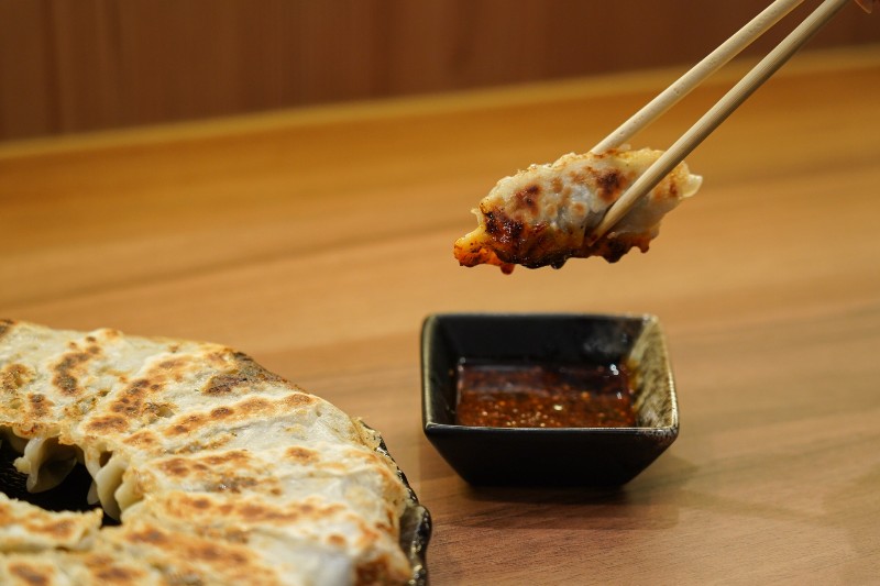 นอกจากเมนูราเมงขึ้นชื่อของทางร้าน อีกหนึ่งเมนูซิกเนเจอร์ที่ไม่ควรพลาดเลยคือ เกี๊ยวซ่า ซึ่งเกี๊ยวซ่าที่นี่จะเป็นสูตรฮาเนะสึกิ ชื่อดังของญี่ปุ่น ใช้วิธีการทอดพิเศษ ขอบแป้งจะกรอบนอกนุ่มใน ตัวแป้งจะดูดซับความเข้มข้นของน้ำจิ้มที่ชัดเจน ส่วนตัวไส้ของเกี๊ยวซ่า คิดค้นสูตรมาจากฮามามัตสึ เมืองที่โด่งดังเรื่องกะหล่ำปลี ซึ่งเป็นองค์ประกอบหลักของตัวเกี๊ยวซ่าและปรุงด้วยรสชาติที่กลมกล่อมตามแบบฉบับต้นตำรับ ในตัวของน้ำจิ้มก็เป็นสูตรโฮมเมดของร้านโดยเฉพาะ จะใส่น้ำมันรายู ที่มีส่วนผสมของน้ำมันงาคั่วกับพริก ทานแล้วจะออกรสชาติเผ็ดตัดความเลี่ยนได้อย่างดี และยังมีน้ำมันพริกคั่วที่ให้ความเผ็ด หากทานน้ำจิ้มร่วมกับกับเกี๊ยวซ่าแล้วจะให้ความเผ็ด เปรี้ยว ไม่เค็มเกินไป และได้ความสดชื่นกำลังดี