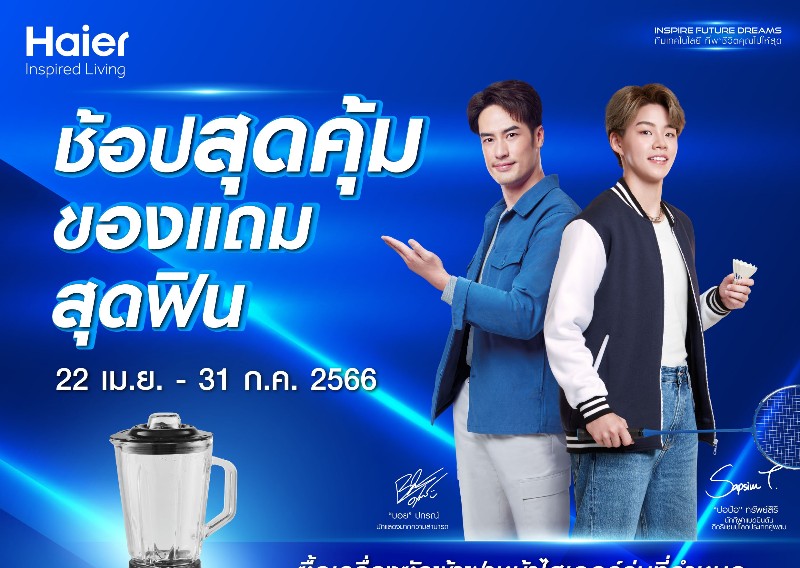 กรุงเทพฯ ประเทศไทย (วันที่ 26 มิถุนายน 2566) – ไฮเออร์ ผู้นำด้านผลิตภัณฑ์และนวัตกรรมเครื่องใช้ไฟฟ้าระดับโลกและแบรนด์เครื่องใช้ไฟฟ้าอันดับ 1 ของโลกติดต่อกัน 14 ปีซ้อน จัดแคมเปญ “ช้อปสุดคุ้ม ของแถมสุดฟิน” เอาใจลูกค้าสายช้อป ด้วยโปรโมชั่นสุดพิเศษ เพียงซื้อสินค้าตู้เย็นไฮเออร์เฉพาะรุ่นที่กำหนด จะได้สิทธิ์รับของแถมพรีเมียมเป็นเครื่องบดอาหารไฮเออร์ รุ่น FP7723A มูลค่า 1,990 บาท หรือ ซื้อเครื่องซักผ้าฝาหน้าไฮเออร์รุ่นที่กำหนด รับฟรีเครื่องปั่นอเนกประสงค์ไฮเออร์ รุ่น HBL-3320 มูลค่า 1,290 บาท