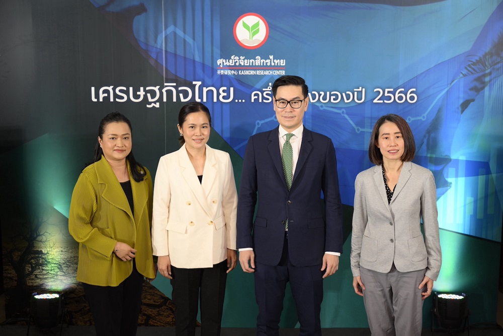 นางสาวณัฐพร ตรีรัตน์ศิริกุล รองกรรมการผู้จัดการ บริษัท ศูนย์วิจัยกสิกรไทย จำกัด กล่าวว่า แม้เศรษฐกิจในช่วงครึ่งปีหลัง จะเห็นภาพการขยายตัวที่ดีกว่าครึ่งปีแรก โดยได้รับแรงหนุนจากฤดูกาลท่องเที่ยวที่สุดท้ายแล้ว คงจะเห็นตัวเลขนักท่องเที่ยวต่างชาติทั้งปี 2566 ที่ประมาณ 28.5 ล้านคน และทำให้คาดว่าจีดีพีในช่วงครึ่งปีหลังจะขยายตัวประมาณ 4.3% จากช่วงครึ่งปีแรกที่ประมาณ 3.0% อย่างไรก็ตาม ไทยจะเผชิญหลายโจทย์สำคัญที่ท้าทายการฟื้นตัวทางเศรษฐกิจในช่วงครึ่งปีหลัง โดยโจทย์แรก คือ การจัดตั้งรัฐบาล และการรับมือกับทิศทางเศรษฐกิจจีนที่เริ่มเห็นสัญญาณอ่อนแรง ซึ่งย่อมเปิดประเด็นความเสี่ยงให้กับเศรษฐกิจอาเซียนและไทยที่พึ่งพาเศรษฐกิจจีนค่อนข้างสูง โดยศูนย์วิจัยกสิกรไทยยังคงประมาณการจีดีพีปี 2566 ที่ 3.7% และคงตัวเลขการส่งออกไว้ที่ -1.2% แต่ปรับลดการบริโภคภาครัฐบาลและการลงทุน เนื่องจากยังอยู่ในช่วงที่รอการจัดตั้งรัฐบาลใหม่ และปัญหาหนี้ครัวเรือนที่มีความซับซ้อนซึ่งเป็นโจทย์ที่รอการแก้ไข