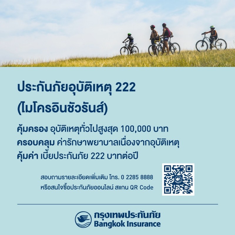 บริษัท กรุงเทพประกันภัย จำกัด (มหาชน) พัฒนารูปแบบกรมธรรม์ประกันภัยรายย่อย หรือไมโครอินชัวรันส์ขึ้น เพื่อเป็นหลักประกันที่มั่นคงให้แก่ลูกค้าและประชาชนทุกระดับ โดยออกแผนประกันภัยอุบัติเหตุ 222 (ไมโครอินชัวรันส์) ด้วยเงื่อนไขความคุ้มครองที่ไม่ซับซ้อน ครอบคลุมทั้งกรณีเสียชีวิต สูญเสียอวัยวะ และค่ารักษาพยาบาลจากอุบัติเหตุ เบี้ยประกันภัยไม่แพง สามารถเข้าถึงง่าย ซื้อผ่านออนไลน์ได้สะดวก โดยมีผลประโยชน์ดังนี้