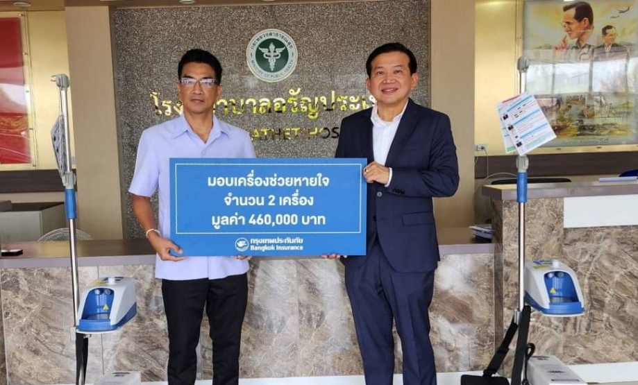 บริษัท กรุงเทพประกันภัย จำกัด (มหาชน) โดยนายธีรยุทธ กิจวรพัฒน์ ผู้อำนวยการ ธุรกิจสาขาและการร่วมทุน เป็นผู้แทนบริษัทฯ มอบเครื่องช่วยหายใจชนิดอัตราการไหลสูง พร้อมชุดอุปกรณ์ จำนวน 2 เครื่อง รวมมูลค่า 460,000 บาท ให้แก่โรงพยาบาลอรัญประเทศ เนื่องจากเครื่องช่วยหายใจที่มีอยู่ชำรุดส่งผลให้ไม่เพียงพอต่อการรักษาผู้ป่วยที่มีจำนวนมาก โดยมีนายแพทย์ราเชษฎ เชิงพนม ผู้อำนวยการโรงพยาบาลอรัญประเทศ เป็นผู้แทนรับมอบ ณ โรงพยาบาลอรัญประเทศ จังหวัดสระแก้ว เมื่อวันที่ 26 กรกฎาคม 2566 ที่ผ่านมา