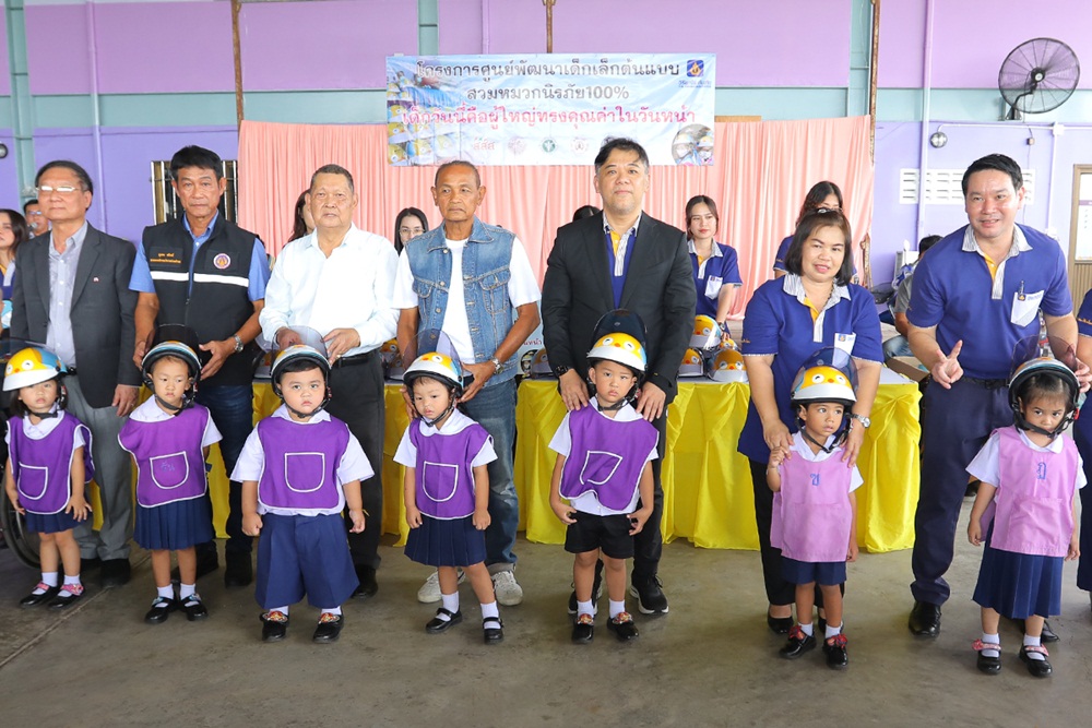 สำหรับโครงการศูนย์พัฒนาเด็กเล็กต้นแบบสวมหมวกนิรภัย 100% เป็นการสานต่อโครงการศูนย์เด็กเล็กปลอดภัย-ปลอดโรค ซึ่งทางมูลนิธิเมาไม่ขับ พร้อมด้วย ชมรมคนห่วงหัว และบริษัทฯ ร่วมมือกันผลักดันให้เยาวชนและผู้ปกครองเล็งเห็นความสำคัญของการสวมหมวกนิรภัย โดยที่ผ่านมาได้ร่วมกันดำเนินการมาแล้วในพื้นที่จังหวัดน่าน, อำเภอสอยดาว จังหวัดจันทบุรี จังหวัดบึงกาฬ และจังหวัดฉะเชิงเทราในครั้งนี้ เพื่อเป็นเมืองต้นแบบในการรณรงค์ความปลอดภัยบนท้องถนนให้เด็กเล็กสวมหมวกนิรภัย 100% ทุกครั้งขณะเดินทางด้วยรถจักรยานยนต์ พร้อมกับเดินขยายผลโครงการดังกล่าวสู่จังหวัดอื่นๆ ทั่วประเทศต่อไป
