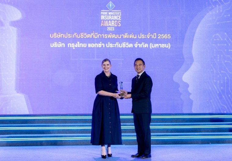 บริษัท กรุงไทย-แอกซ่า ประกันชีวิต จำกัด (มหาชน) โดย คุณแซลลี่ โอฮาร่า ประธานเจ้าหน้าที่บริหาร เข้ารับมอบรางวัล “บริษัทประกันชีวิตที่มีการพัฒนาดีเด่นประจำปี 2565” ในพิธีมอบรางวัลประกันภัยดีเด่นครบวงจร (Prime Minister’s Insurance Awards) ประจำปี 2566 จัดขึ้นโดย สำนักงานคณะกรรมการกำกับและส่งเสริมการประกอบธุรกิจประกันภัย (คปภ.) ซึ่งได้รับเกียรติจาก นายกฤษฎา จีนะวิจารณะ รัฐมนตรีช่วยว่าการกระทรวงการคลัง เป็นผู้มอบ ณ ห้องประชุม ฟีนิกซ์ 1-6 ศูนย์แสดงสินค้าและการประชุมอิมแพ็ค เมืองทองธานี