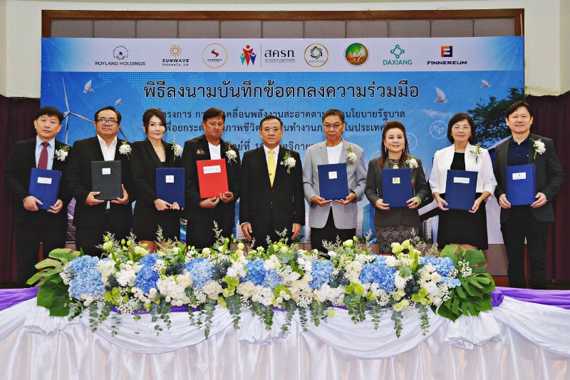 จึงเป็นที่มาในพิธีลงนามบันทึกข้อตกลงความร่วมมือใน “โครงการ การขับเคลื่อนพลังงานสะอาดตามแนวนโยบายรัฐบาลเพื่อยกระดับคุณภาพชีวิตของคนทำงานภาครัฐในประเทศไทย” ในครั้งนี้ ซึ่งมีตัวแทนสหภาพคนทำงานภาครัฐแห่งประเทศไทย (สครท.) และบริษัทเอกชน อาทิ บริษัท สตรอง (ไทยแลนด์) จำกัด, บริษัท รอยแลนด์ โฮลด์ดิ้งส์ จำกัด, บริษัท ซันเวฟ โซลูชั่น จำกัด, บริษัท ยูนิสตรอง จำกัด, บริษัท ฟินเนเรียม จำกัด, บริษัท ต้าเสียงจำกัด และสมาคมการค้านักธุรกิจสากล (สคส) ลงนามบันทึกข้อตกลงความร่วมมือ
