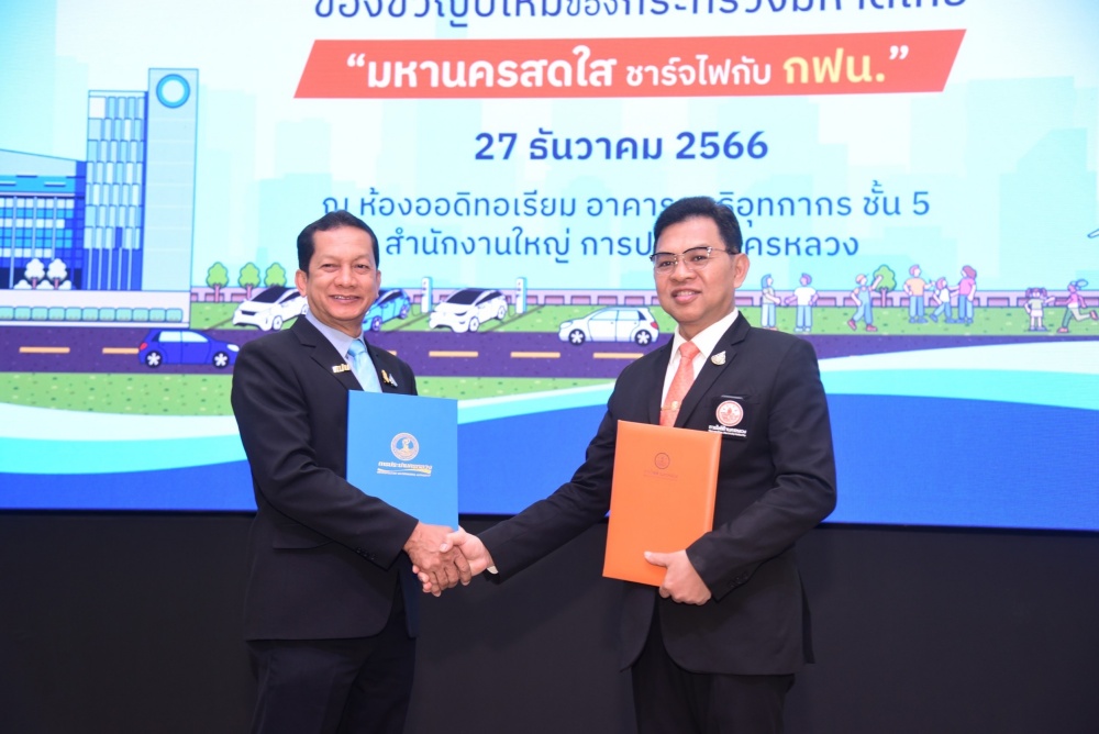 วันนี้ (27 ธันวาคม 2566) นายวิลาศ เฉลยสัตย์ ผู้ว่าการ MEA หรือการไฟฟ้านครหลวง พร้อมด้วย นายมานิต ปานเอม ผู้ว่าการการประปานครหลวง (กปน.) ร่วมพิธีลงนามบันทึกข้อตกลงเข้าร่วมโครงการของขวัญปีใหม่ของกระทรวงมหาดไทย “มหานครสดใส ชาร์จไฟ กับ กฟน.” ระหว่าง MEA กับ กปน. ณ ห้องออดิทอเรียม ชั้น 5 อาคารสุทธิอุทกากร กปน. สำนักงานใหญ่