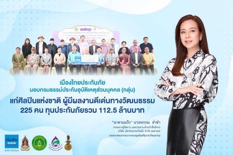 นางนวลพรรณ ล่ำซำ กรรมการผู้จัดการ และประธานเจ้าหน้าที่บริหาร บริษัท เมืองไทยประกันภัย จำกัด (มหาชน) หรือ MTI ในฐานะประธานคณะกรรมการกองทุนส่งเสริมงานวัฒนธรรม ได้มอบกรมธรรม์ประกันอุบัติเหตุส่วนบุคคล (กลุ่ม) ให้กับศิลปินแห่งชาติ ผู้ทรงคุณวุฒิทางวัฒนธรรม ผู้มีผลงานดีเด่นทางวัฒนธรรม และคณะกรรมการกองทุนส่งเสริมงานวัฒนธรรม จำนวน 225 คน เพื่อมอบเป็นของขวัญปีใหม่และเป็นกำลังใจแก่บุคคลที่ร่วมกันสนับสนุน ส่งเสริม สืบสาน และร่วมอนุรักษ์ศิลปวัฒนธรรมของชาติ โดยมี โดยมีนายโกวิท ผกามาศ อธิบดีกรมส่งเสริมวัฒนธรรม และนายธีรภัทร ประยูรสิทธิ คณะกรรมการกองทุนส่งเสริมงานวัฒนธรรม เป็นผู้แทนมอบกรมธรรม์