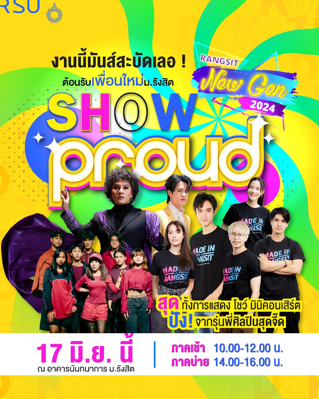 มหาวิทยาลัยรังสิต ต้อนรับเปิดเทอมจัดงานปฐมนิเทศนักศึกษาใหม่ ประจำปี 2567 RANGSIT NEW GEN 2024 ภายใต้ธีม “Show Proud” ให้น้องๆ นักศึกษาใหม่ได้สัมผัสบรรยากาศการต้อนรับอย่างอบอุ่น และสนุกไปกับไปกับโชว์การแสดงและมินิคอนเสิร์ตจากรุ่นพี่ศิลปิน อาทิ เพียว The Voice/ เอิร์ธ ณัฐกรณ์ / วง DOSE RED พร้อมด้วย พี่ดิว พี่เขต พี่ไมกี้ พี่จีน่า และเดนิส และการแสดง Opening Show และ RSU Cheerleading