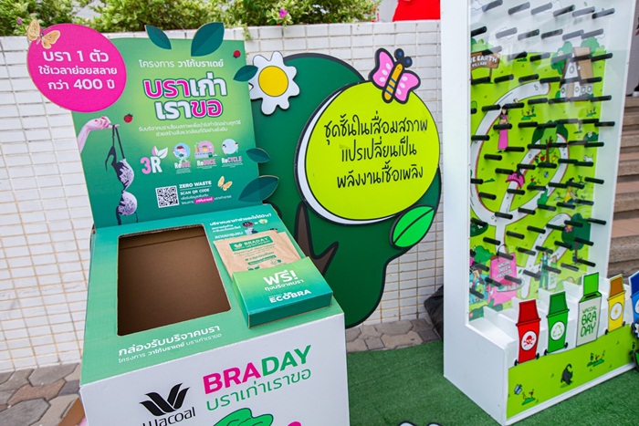 “วาโก้บราเดย์ บราเก่าเราขอ” เป็นโครงการที่วาโก้ดำเนินการจัดทำขึ้นมาเพื่อช่วยลดปัญหาสิ่งแวดล้อม เนื่องจากวัสดุส่วนใหญ่ที่นำมาผลิตชุดชั้นในนั้นมาจากโพลิเมอร์ ทำให้บราแต่ละตัวจะใช้เวลาในการย่อยสลายมากกว่า 400 ปี อีกทั้งการนำไปกำจัดที่ไม่ถูกวิธี ยังอาจก่อให้เกิดปัญหาด้านมลพิษรวมถึงเป็นการเพิ่มปริมาณก๊าซเรือนกระจกที่เป็นสาเหตุหนึ่งของการเกิดภาวะโลกร้อนได้อีกด้วย ทั้งนี้ ทางวาโก้จะนำชุดชั้นในเก่าทั้งหมดไปกำจัดโดยการเผาในระบบปิดที่บริษัท ทีพีไอ โพลีน เพาเวอร์ จำกัด (มหาชน) หรือ TPIPP จังหวัดสระบุรี ด้วยวิธีการเผาอย่างถูกวิธีแบบ Zero Waste (เปลี่ยนขยะให้เป็นศูนย์) แปรเปลี่ยนเป็นพลังงานเชื้อเพลิง ทดแทนการใช้ถ่านหินในการผลิตกระแสไฟฟ้า ลดการใช้ทรัพยากรธรรมชาติ หรือพลังงานจากฟอสซิลต่างๆ ลดผลกระทบการเกิดการเปลี่ยนแปลงสภาพภูมิอากาศ (Climate Change) หรือลดโลกร้อน (Global Warming) ทั้งยังลดขยะชุมชน และลดฝุ่น PM 2.5