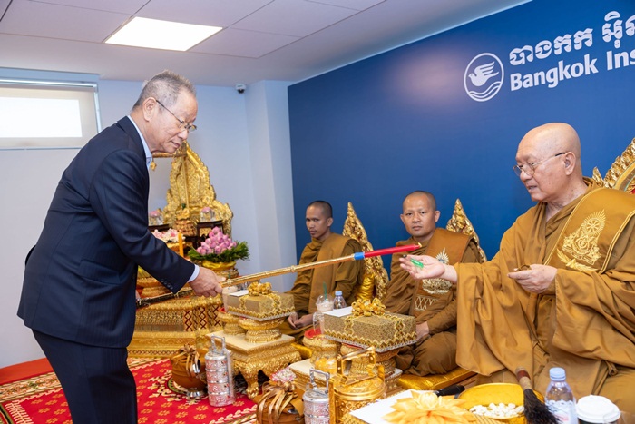 โดยมีสมเด็จพระอภิสิริสุคนธา มหาสังฆราชาธิบดี บัว กรี สมเด็จพระสังฆราชฝ่ายธรรมยุติกนิกายของกัมพูชา เป็นประธานสงฆ์ เพื่อความเป็นสิริมงคลในการดำเนินธุรกิจให้เจริญก้าวหน้าและประสบผลสำเร็จ โดยมีคณะกรรมการ คณะผู้บริหาร และพนักงานเข้าร่วมพิธีดังกล่าว ณ Bangkok Insurance (Cambodia) เลขที่ 181 ถนนนโรดม สังกัดบึงเกงกอง 1 จังหวัดพนมเปญ ประเทศกัมพูชา เมื่อวันที่ 11 มิถุนายน 2567