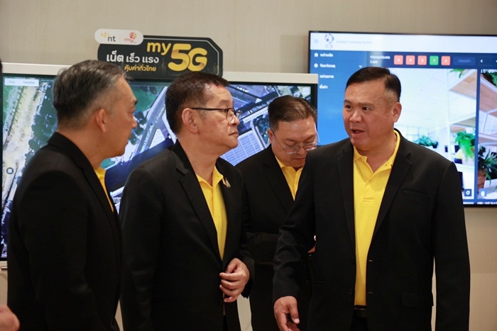 พันเอก สรรพชัยย์ หุวะนันทน์ กรรมการผู้จัดการใหญ่ บริษัท โทรคมนาคมแห่งชาติ จำกัด (มหาชน) หรือ NT นำคณะผู้บริหารให้การต้อนรับ นายประเสริฐ จันทรรวงทอง รัฐมนตรีว่าการกระทรวงดิจิทัลเพื่อเศรษฐกิจและสังคม ในโอกาสเยี่ยมชมการทดสอบระบบแจ้งเตือนภัยฉุกเฉินแก่ประชาชนภายใต้ โครงการระบบแจ้งเตือนภัยฉุกเฉินผ่านเครือข่ายโทรศัพท์เคลื่อนที่ ณ Co-Working Space อาคารสโมสร NT สำนักงานใหญ่