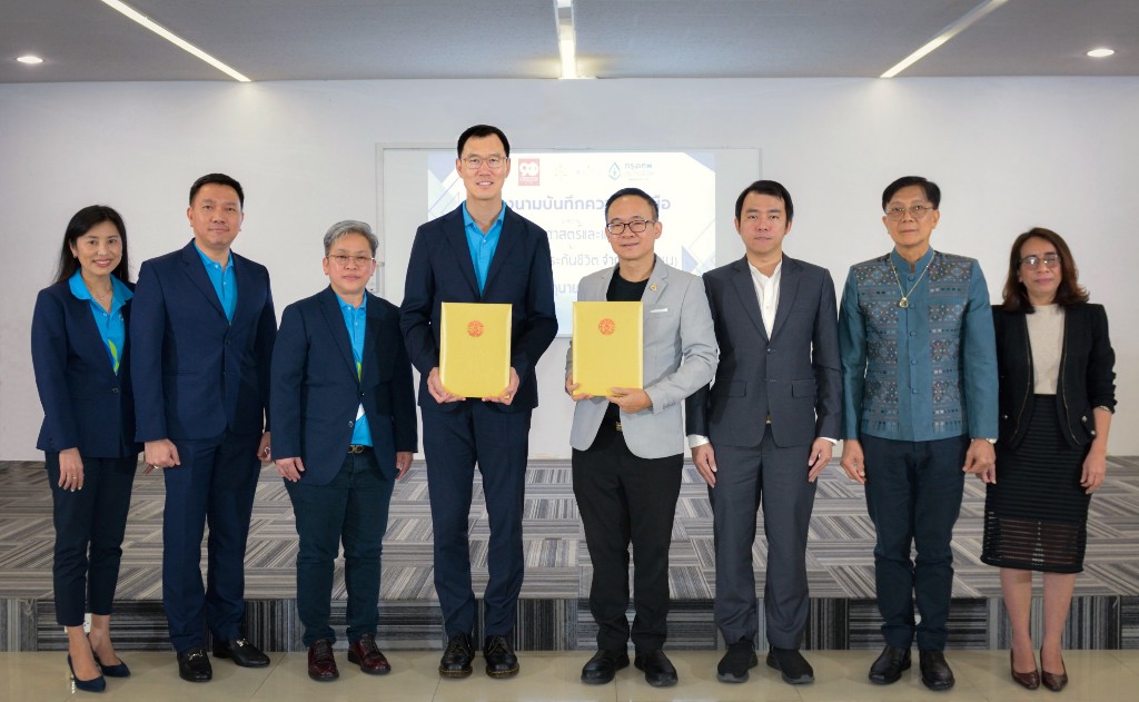 บริษัท กรุงเทพประกันชีวิต จำกัด (มหาชน) โดย นายโชน โสภณพนิช (ที่ 4 จาก ซ้าย) กรรมการผู้จัดการใหญ่และประธานเจ้าหน้าที่บริหาร พร้อมด้วย นางสาวศิรินารถ วงศ์เจริญสถิตย์ (ที่ 3 จาก ซ้าย) ผู้ช่วยผู้จัดการใหญ่ สายเทคโนโลยี ร่วมลงนามในบันทึกข้อตกลง กับ คณะวิทยาศาสตร์และเทคโนโลยี มหาวิทยาลัยธรรมศาสตร์ เพื่อสร้างความร่วมมือระหว่างกันในด้านการศึกษา การวิจัย และพัฒนาบุคลากร อันจะนำไปสู่ความเป็นเลิศทางด้านวิชาการ เทคโนโลยีและนวัตกรรม สามารถนำผลการวิจัยมาพัฒนาเพื่อให้เกิดประโยชน์ต่อการพัฒนาผลิตภัณฑ์ รวมทั้งยังสร้างบุคลากรคุณภาพเพื่อยกระดับอุตสาหกรรมประกันชีวิตในระยะยาว โดยมี รองศาสตราจารย์ ดร.สุเพชร จิรขจรกุล (ที่ 4 จาก ขวา) คณบดีคณะวิทยาศาสตร์และเทคโนโลยี ร่วมลงนาม พร้อมด้วยคณาจารย์และผู้บริหารทั้ง 2 ฝ่ายร่วมเป็นสักขีพยานในพิธี ณ มหาวิทยาลัยธรรมศาสตร์ ศูนย์รังสิต เมื่อเร็วๆนี้