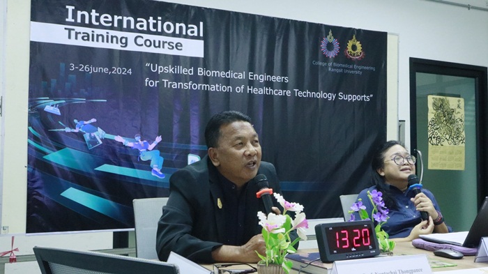 ในฐานะที่วิทยาลัยวิศวกรรมชีวการแพทย์ มหาวิทยาลัยรังสิต ได้ผลิตบัณฑิตทางด้านวิศวกรรมชีวการแพทย์ทั้งในระดับปริญญาตรี ปริญญาโท และปริญญาเอก มากว่า 20 ปี มีความพร้อมในทุกด้านมากเพียงพอในการที่จะเป็นขุมพลังแห่งปัญญาและชี้นำสังคมทางด้านวิศวกรรมชีวการแพทย์ รวมทั้งเพื่อตอบสนองยุทธศาสตร์ของประเทศไทยในด้านการมุ่งมั่นเป็นศูนย์กลางทางการแพทย์และการดูแลรักษาสุขภาพให้สอดคล้องกับกระบวนทัศน์ใหม่ทางด้านการแพทย์นี้ จึงได้รับการสนับสนุนจากกรมความร่วมมือระหว่างประเทศ กระทรวงต่างประเทศให้จัดอบรมหลักสูตรแบบ Non Degree เรื่อง “Upskilled Biomedical Engineers for Transformation of Healthcare Technology Support” ระหว่างวันที่ 3-26 มิถุนายน 2567 โดยมีวิศวกรชีวการแพทย์ จากกว่า 15 ประเทศ ทั่วทุกภูมิภาคของโลกเข้าร่วมอบรมจำนวน 40 คน