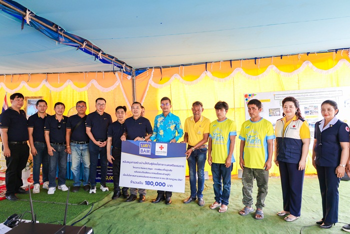 นายบัณฑิต อนันตมงคล ประธานเจ้าหน้าที่บริหารพร้อมด้วยผู้บริหารและพนักงานบริษัทบริหารสินทรัพย์ กรุงเทพพาณิชย์ จำกัด (มหาชน) หรือ BAM ร่วมกับ นายสมพงษ์ มากมณี รองผู้ว่าราชการจังหวัดนครศรีธรรมราช นางปิติมา รักพานิชมณี นายกเหล่ากาชาดจังหวัดนครศรีธรรมราชและนางศลิตา เสนา นายอำเภอเฉลิมพระเกียรติส่งมอบบ้าน BAM “โครงการ Home & Hope การพัฒนาที่อยู่อาศัย เฉลิมพระเกียรติพระบาทสมเด็จพระเจ้าอยู่หัว เนื่องในโอกาสมหามงคลเฉลิมพระชนมพรรษา 6 รอบ 28 กรกฎาคม 2567 ” ให้กับ นางสุภาพ บัวบรรจง อาศัยอยู่ ณ อำเภอเฉลิมพระเกียรติ จังหวัดนครศรีธรรมราช พร้อมกันนี้ ผู้บริหารและพนักงานฝ่ายพัฒนาสินทรัพย์ภาคใต้ตอนบนและภาคใต้ตอนล่างของ BAM ได้ร่วมสมทบทุนจัดซื้อแผ่นกระเบื้องปูพื้นบ้านพร้อมรถเข็นวีลแชร์เพิ่มเติมให้อีกด้วย