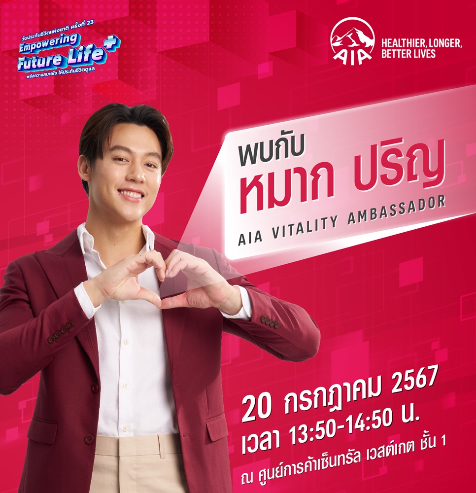 เอไอเอ ประเทศไทย ตอกย้ำการเป็นบริษัทประกันชีวิตและสุขภาพอันดับหนึ่งของประเทศไทย[1] จัดทัพผลิตภัณฑ์ประกันชีวิต ประกันสุขภาพ และประกันโรคร้ายแรง ร่วมงาน วันประกันชีวิตแห่งชาติ ครั้งที่ 23 ภายใต้คอนเซ็ปต์ Empowering Future Life+ พลัสความสบายใจให้ประกันชีวิตดูแล ซึ่งจะจัดขึ้นระหว่างวันที่ 20 – 21 กรกฎาคม 2567 ณ ลานโปรโมชั่น ชั้น 1 ศูนย์การค้าเซ็นทรัล เวสต์เกต โดยในงานเอไอเอได้เตรียมนำผลิตภัณฑ์ประกันชีวิตและสุขภาพ ตลอดจนประกันโรคร้ายแรง และประกันชีวิตควบการลงทุน (ยูนิต ลิงค์) ที่มีความน่าสนใจ อาทิ ผลิตภัณฑ์ประกันสุขภาพแบบเหมาจ่าย “AIA Health Happy” และ “AIA Health Saver” รวมถึงประกันสุขภาพสำหรับเด็กตัวใหม่ล่าสุด “AIA Health Happy Kids” ที่ให้ความคุ้มครองสูงสุดถึง 25 ล้านบาทต่อปีกรมธรรม์[2] และผลิตภัณฑ์ประกันโรคร้ายแรง “AIA CI ProCare” ที่จะเป็นตัวช่วยในการวางแผนชีวิตได้อย่างมือโปรด้วยเบี้ยประกันแบบคงที่ คุ้มครองยาวนาน 99 ปี[2] ครอบคลุมโรคร้ายแรงทุกระดับการเจ็บป่วย และไม่ต้องจ่ายเบี้ยฯ ทิ้ง ซึ่งผลิตภัณฑ์ประกันชีวิตและสุขภาพของเอไอเอทุกตัวจะมาพร้อมกับบริการด้านสุขภาพที่ลูกค้าจะได้รับแบบครบวงจร เพื่อช่วยเติมเต็มความคุ้มครองและสร้างความมั่นคงให้กับคนไทยทุกครอบครัว รวมถึงผู้คนกว่าหนึ่งพันล้านคนทั่วภูมิภาคเอเชีย ตามคำมั่นสัญญา ‘Healthier, Longer, Better Lives – เพื่อสุขภาพและชีวิตที่ดีขึ้น’