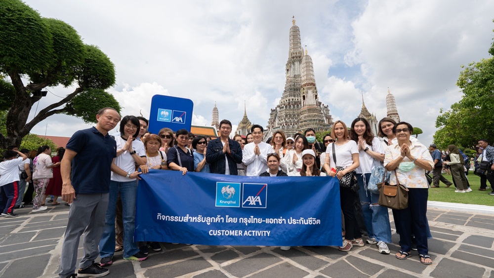บมจ.กรุงไทย-แอกซ่า ประกันชีวิต นำโดย คุณนิสิต สีหะวงษ์ Head of Customer Relations & Event Management (แถวหน้า คนที่ 6 จากซ้าย) จัดกิจกรรมสุดเอ็กซ์คลูซีฟ “ไหว้พระเสริมดวงครึ่งปีหลังกับหมอช้าง ทศพร ศรีตุลา” พาลูกค้าขอพรสิ่งศักดิ์สิทธิ์คู่บ้านคู่เมืองที่ศาลหลักเมืองกรุงเทพมหานคร และไหว้พระวัดอรุณราชวรารามราชวรมหาวิหาร เพื่อความเป็นสิริมงคลให้มีความเจริญรุ่งเรืองทั้งในเรื่องของชีวิตและหน้าที่การงาน รับฟังดวงตามลักขณาราศีต่างๆ ในครึ่งปีหลัง พร้อมร่วมรับประทานมื้อเที่ยงที่ร้านอาหารหอสมุทร โดยกิจกรรมได้สร้างความสนุกสนาน และส่งมอบความประทับใจให้กับลูกค้าคนสำคัญ ซึ่งเป็นไปตามนโยบายของบริษัทฯ ที่จะอยู่เคียงข้างทุกความเชื่อมั่น ดูแลกันตลอดไป
