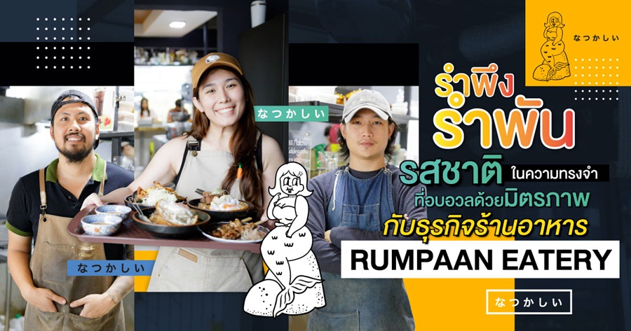 ไอซ์ – กฤตานน ฤทธิ์คำรบ เจ้าของร้าน Rumpaan Eatery เล่าเส้นทางการทำธุรกิจให้ฟังว่า หลังเรียนจบ ม.รังสิต ไปเรียนต่อที่เกาหลีเพื่อเรียนรู้วัฒนธรรมและเก็บประสบการณ์นำกลับมาพัฒนาต่อยอด ช่วงกลับไทยเริ่มทำงานเป็นพนักงานครัวที่ร้านแดก ก่อนร้านจะย้ายสาขาและปิดตัวลง เดินทางในสายอาชีพเชฟมาระยะหนึ่ง คำนึงถึงบั้นปลายของอาชีพที่สุดท้ายคงเป็นเพียงคนทำงาน หรือเป็นคนเก่งคนหนึ่ง ทุกคนมีเป้าหมายที่อยากทำให้สำเร็จ จึงเลือกอีกเส้นทางชีวิต ผันตัวสู่นักธุรกิจ แน่นอนว่าเขายังคงคอนเซ็ปต์การเป็นเชฟ อาหารที่ถูกเสิร์ฟจะต้องผ่านฝีมือของเขา “การคลุกคลีกับอาหาร ความร้อน อุณหภูมิ และความวุ่นวายในครัวยังคงเป็นสิ่งที่ผมรัก”ไอซ์ว่าแบบนั้น นับเป็นความท้าทายของชีวิตที่อยากก้าวไปอีกขั้นของการทำงาน เปิดโอกาสให้ตัวเองได้ลองทำสิ่งใหม่ ๆ ที่มากกว่าการเป็นเชฟ สู่การเป็นเจ้าของธุรกิจร้านอาหาร “รำพัน” ในปัจจุบัน และคุณยายก็เป็นที่มาของชื่อร้านนี้ เพราะเชื่อว่าทุกคนมีรสชาติในความทรงจำ รสชาติแรกของใครหลายคน