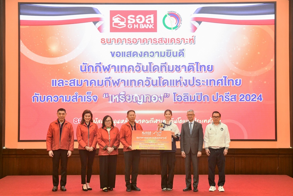 ธนาคารอาคารสงเคราะห์ (ธอส.) ให้การต้อนรับนักกีฬาเทควันโดทีมชาติไทย ในโอกาสมาแสดงความขอบคุณในฐานะผู้สนับสนุนหลักของสมาคมกีฬาเทควันโดแห่งประเทศไทย ตั้งแต่ปี 2549 ถึงปัจจุบัน โดย ธอส.พร้อมมอบเงินรางวัลพิเศษรวม 4 ล้านบาท ให้แก่นักกีฬาและผู้ฝึกสอนกีฬาเทควันโดทีมชาติไทย หลังคว้าชัยในการแข่งขันโอลิมปิก ปารีส 2024 นำมาซึ่งความสุขและความภาคภูมิใจมาสู่คนไทยทั้งประเทศ
