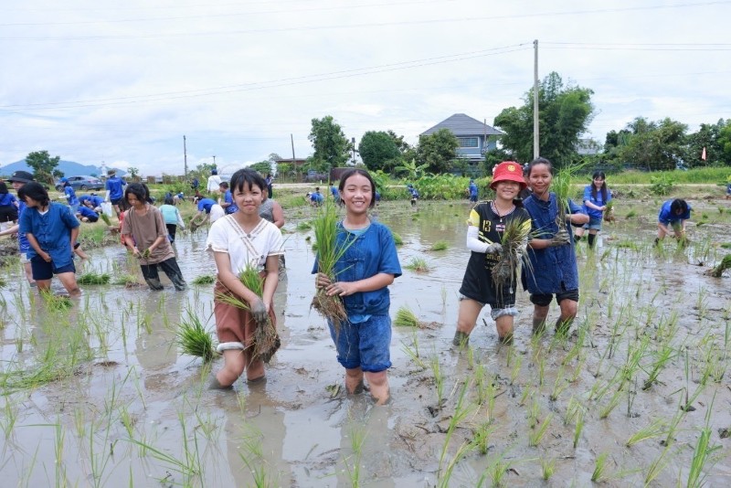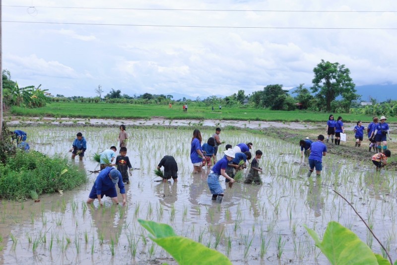 บมจ.กรุงไทย-แอกซ่า ประกันชีวิต นำโดย คุณบุปผาวดี โอวรารินท์ ประธานเจ้าหน้าที่บริหาร ฝ่ายทรัพยากรมนุษย์และภาพลักษณ์องค์กรและการสื่อสารองค์กร (คนกลาง) นำทีมคณะผู้บริหาร พนักงาน และฝ่ายขายจิตอาสา ร่วมเดินหน้าสร้างความยั่งยืนให้กับชุมชน ผ่านกิจกรรมปลูกข้าว พร้อมทั้งมอบคอมพิวเตอร์ ในโครงการ “แผ่นดินทองเพื่อน้องๆ บ้านนานา ปีที่ 17” ณ. มูลนิธิพันธกิจเด็กและชุมชน บ้านนานา อ. แม่สาย จ. เชียงราย ซึ่งเป็นโครงการที่บริษัทฯ จัดทำอย่างต่อเนื่อง และช่วยสร้างรายได้ที่ยั่งยืน โดยสามารถช่วยสร้างผลผลิตข้าวให้แก่ชุมชน จาก 2,000 ก.ก. ต่อปี เพิ่มสูงขึ้นเป็นกว่า 7,000 ก.ก. ต่อปี