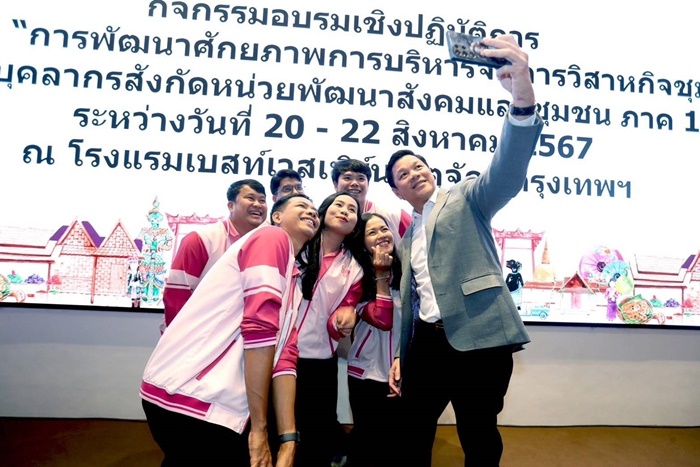 พร้อมกันนี้ยังได้เยี่ยมชมผลสัมฤทธิ์จากการอบรมหลักสูตรการพัฒนาศักยภาพการบริหารจัดการวิสาหกิจชุมชนของบุคลากรในสังกัดหน่วยพัฒนาสังคมและชุมชน สายงานกิจการสาขา 1- 6 และหน่วยงานพัฒนาจากส่วนกลาง ซึ่งถือเป็นการสร้างองค์ความรู้และพัฒนาศักยภาพบุคลากรขององค์กรที่ทำหน้าที่วิทยากรกระบวนการในการทำงานเพื่อสังคมและชุมชน เพื่อนำองค์ความรู้ถ่ายทอดต่อวิสาหกิจชุมชนที่รับผิดชอบ อันจะเป็นประโยชน์ต่อการปฏิบัติงานภายใต้แนวทางการพัฒนาชุมชนแบบองค์รวม เพื่อขับเคลื่อนบทบาทธนาคารเพื่อสังคมตามเป้าหมายต่อไป ณ โรงแรมเบสท์เวสเทิร์น จตุจักร กรุงเทพฯ เมื่อวันที่ 21 สิงหาคม 2567