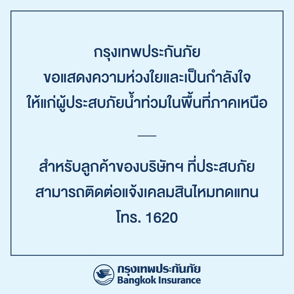 สำหรับลูกค้าของบริษัทฯ ที่ประสบภัยสามารถติดต่อแจ้งเคลมสินไหมทดแทน โทร. 1620