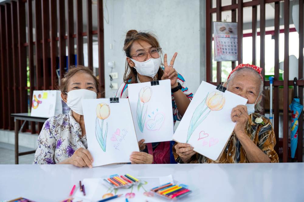 One of the elderly participants from the Sudthavas Foundation expressed her feelings about today’s event, saying, “I am very happy that there are organizations that care about us. It feels heartwarming and encouraging to have people visit and engage in activities with us. Thank you to everyone for making today such a joyful day.”