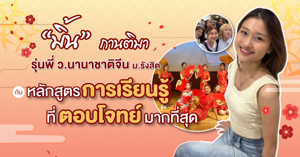 การเรียนภาษาจีนที่วิทยาลัยนานาชาติ มหาวิทยาลัยรังสิต เป็นมากกว่าการได้เรียนรู้ด้านภาษา เพราะที่นี่ หลักสูตรการเรียนการสอนเน้นการเรียนรู้ด้านบริหารธุรกิจ เพื่อเตรียมความพร้อมให้กับนักศึกษาสามารถเตรียมตัวสู่โอกาสใหม่ทางธุรกิจในตลาดโลกได้ เช่นเดียวกับเหตุผลในการเลือกเรียนของเธอคนนี้ มิ้น – กานติมา รุ่นพี่จากวิทยาลัยนานาชาติจีน เธอบอกว่าอยากเรียนอะไรที่มากกว่าภาษา เรียนแล้วจะต้องเอาไปใช้ได้จริงในอนาคตด้วย