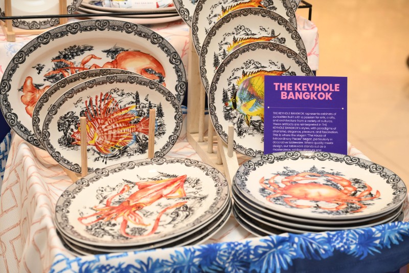 และผลิตภัณฑ์เครื่องใช้บนโต๊ะอาหาร จาก THE KEYHOLE BANGKOK โดยแบรนด์ได้หยิบยกเรื่องราวประวัติศาสตร์ในทั่วทุกมุมโลก ความเชื่อจากหลากหลายวัฒนธรรม ถ่ายทอดออกมาในรูปแบบงานศิลปะ ผนวกเข้ากับดีไซน์และเทคนิคพิเศษที่สั่งสมมาอย่างยาวนาน เป็นต้น