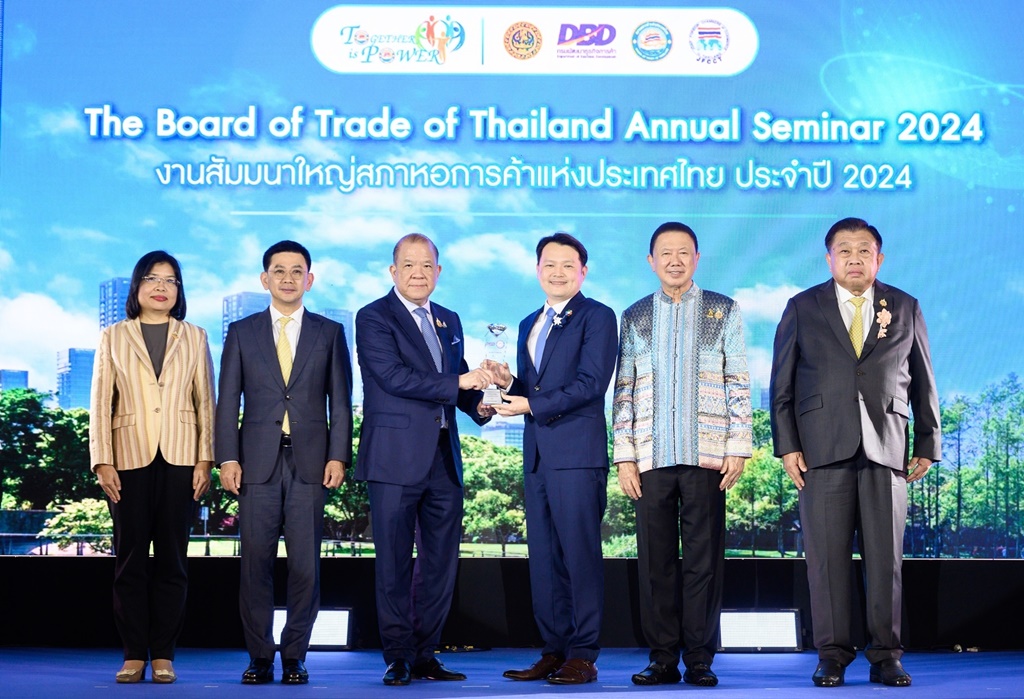 กรุงเทพฯ (18 กันยายน 2567) นายทศพร นิษฐานนท์ (ที่ 3 จากขวา) นายกสมาคมการขายตรงไทย ขึ้นรับรางวัล “สมาคมการค้าดีเด่นรายมิติ” (Trade Association Prestige Award : TAP Award) ประจำปี 2567 โดยผ่านเกณฑ์การประเมินความเป็นเลิศใน มิติด้านคุณภาพการให้บริการ และการพัฒนาองค์กร จาก นายพิชัย นริพทะพันธุ์ รัฐมนตรีว่าการกระทรวงพาณิชย์ (ที่ 3 จากซ้าย) ในงานสัมมนาใหญ่สภาหอการค้าแห่งประเทศไทย ประจำปี 2567 (The Board of Trade of Thailand Annual Seminar 2024) ซึ่งจัดโดยกรมพัฒนาธุรกิจการค้า กระทรวงพาณิชย์ และ สภาหอการค้าแห่งประเทศไทย ณ โรงแรมเซ็นทารา แกรนด์ แอท เซ็นทรัลเวิลด์ เมื่อเร็ว ๆ นี้