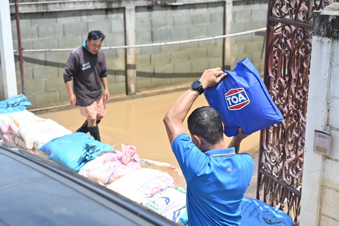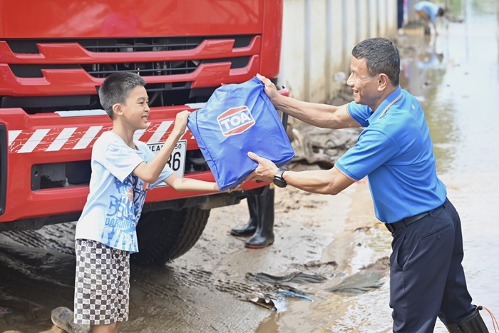 บริษัท ทีโอเอ เพ้นท์ (ประเทศไทย) จำกัด (มหาชน) ตระหนักถึงความจำเป็นในการให้ความช่วยเหลือประชาชนที่ได้รับผลกระทบหลังน้ำลดอย่างเร่งด่วน จึงได้จัดทำโครงการ “TOA ไม่ทิ้งกัน สู้ภัยน้ำท่วม 2567” นำพนักงานทีโอเอจิตอาสาในเขตพื้นที่ภาคเหนือ ลงพื้นที่ร่วมกับเทศบาลตำบลห้วยไคร้ เทศบาลตำบลเวียงพางคำ และองค์การบริหารส่วนตำบลเกาะช้าง อำเภอแม่สาย ระดมมอบถุงยังชีพ ข้าวสาร อาหารแห้ง นม น้ำดื่ม และของใช้จำเป็นอื่นๆ เพื่อช่วยเหลือพี่น้องประชาชนชาวอำเภอแม่สาย จังหวัดเชียงรายที่ประสบภัยน้ำท่วมในพื้นที่ที่เข้าถึงยาก อาทิ ชุมชนบ้านปางห้า ต.เกาะช้าง ชุมชนวัดถ้ำผาจม ต.เวียงพางคำ ชุมชนเหมืองแดง ต.แม่สาย ชุมชนบ้านสันยาว ต.ห้วยไคร้ ฯลฯ