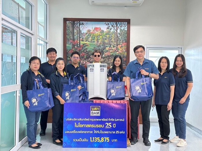 สำหรับการมอบเครื่องฟอกอากาศให้กับโรงพยาบาลดังกล่าว เป็นส่วนหนึ่งของกิจกรรมในโอกาสที่ BAM ครบรอบ 25 ปี จึงได้จัดทำโครงการมอบเครื่องฟอกอากาศให้กับโรงพยาบาล 25 แห่งทั่วประเทศ โดยดำเนินการตามนโยบายส่งเสริมการดำเนินงานด้านสาธารณสุขของประเทศ และร่วมแก้ปัญหามลพิษ เสริมสร้างสุขอนามัยที่ดีให้กับผู้ป่วยรวมทั้งสนับสนุนการปฏิบัติงานบุคลากรทางการแพทย์ให้เกิดประสิทธิภาพ ในการรักษาพยาบาลผู้ป่วยให้มีสุขภาพที่ดีต่อไป