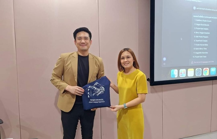 สาขาวิชาภาษาจีน วิทยาลัยศิลปศาสตร์ มหาวิทยาลัยรังสิต จัดบรรยายหัวข้อ “รู้ภาษาจีนหรือภาษาอังกฤษก็ใช้ AI ได้ง่ายขึ้น” โดยได้รับเกียรติจาก น.สพ.ธีรพงษ์ เศรษฐิวัฒน์ (หมอกิม) CEO SALEARM MARKETING AGENCY และกูรูชื่อดัง เป็นวิทยากร ณ ห้อง Theater 6-B506 อาคาร Student Center (อาคาร 6) มหาวิทยาลัยรังสิต