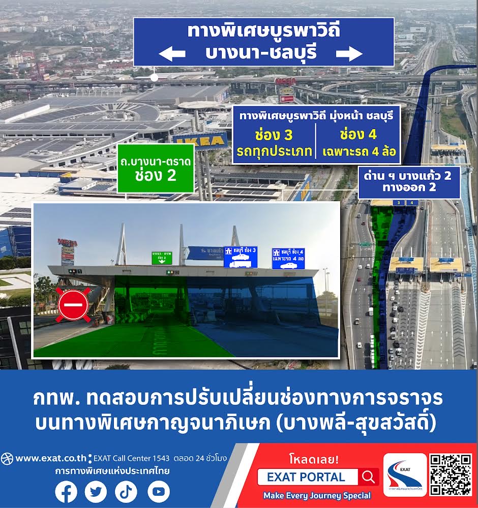 ทั้งนี้ ผู้ที่ต้องการเดินทางไปถนนเทพรัตน หรือถนนบางนา-ตราด มุ่งหน้าบางนา สามารถใช้ด่าน ฯ บางแก้ว 3 ได้ตามปกติ