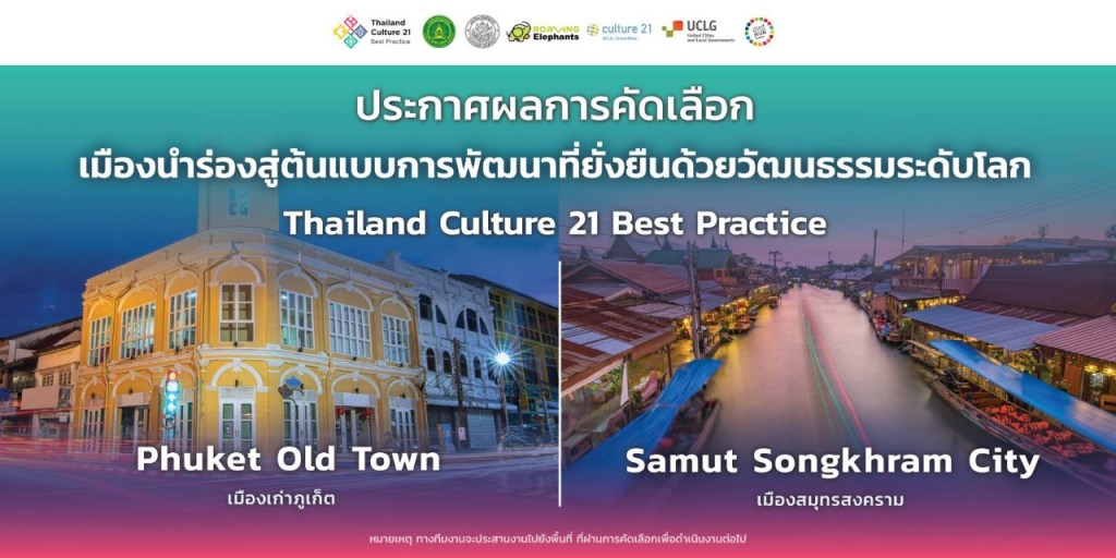 ย่านเมืองเก่าภูเก็ต และจังหวัดสมุทรสงคราม ได้รับการคัดเลือก จากโครงการ Thailand Culture 21 Best Practice ภายใต้การผลักดันของกรมส่งเสริมวัฒนธรรม กระทรวงวัฒนธรรรม พร้อมด้วยเครือข่ายพันธมิตร มหาวิทยาลัยศิลปากร และ Roaming Elephants.com มีจุดมุ่งหมายเพื่อพัฒนาต้นแบบพื้นที่/เมืองแห่งการพัฒนาอย่างยั่งยืน โดยใช้วัฒนธรรมนำเศรษฐกิจของประเทศไทย ตามแนวคิด Agenda 21 for Culture ของสหพันธ์เมืองและรัฐบาลท้องถิ่นระหว่างประเทศ ( United Cities and Local Governments – UCLG )