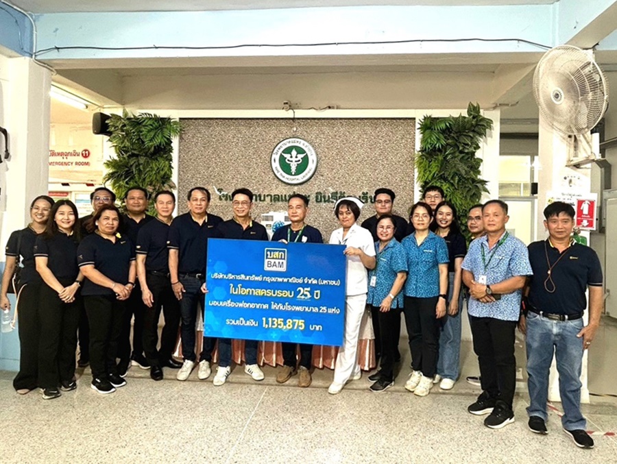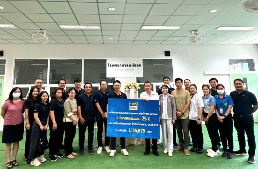 สำหรับการมอบเครื่องฟอกอากาศให้กับโรงพยาบาลดังกล่าว เป็นส่วนหนึ่งของกิจกรรมในโอกาส ที่ BAM ครบรอบ 25 ปี จึงได้จัดทำโครงการมอบเครื่องฟอกอากาศให้กับโรงพยาบาล 25 แห่งทั่วประเทศ โดยดำเนินการตามนโยบายส่งเสริมการดำเนินงานด้านสาธารณสุขของประเทศ และร่วมแก้ปัญหามลพิษ เสริมสร้างสุขอนามัยที่ดีให้กับผู้ป่วย รวมทั้งสนับสนุนการปฏิบัติงานบุคลากรทางการแพทย์ให้เกิดประสิทธิภาพ ในการรักษาพยาบาลผู้ป่วยให้มีสุขภาพที่ดีต่อไป