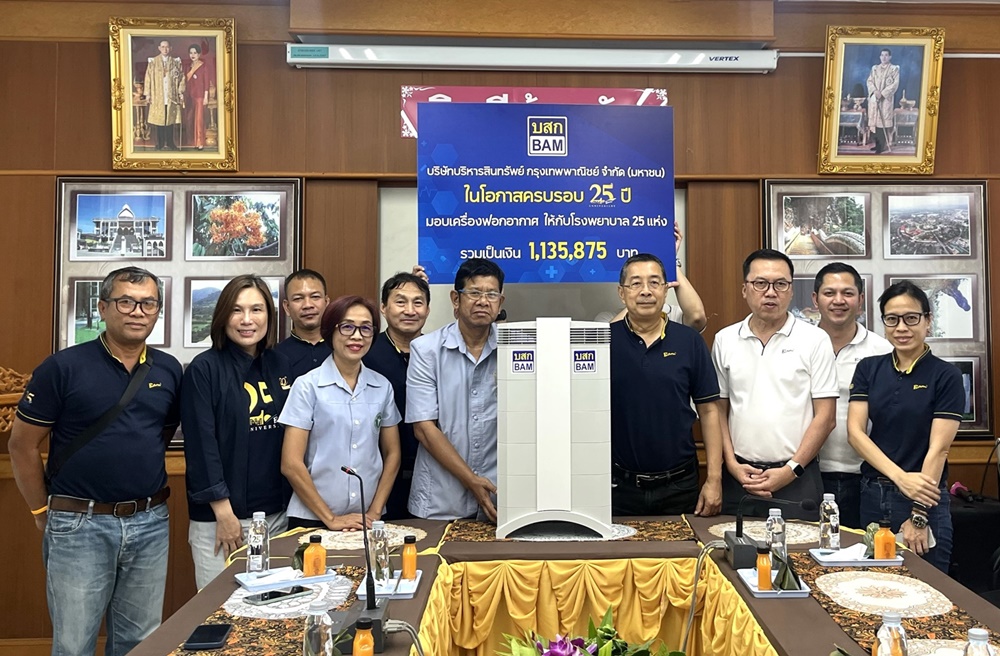 สำหรับการมอบเครื่องฟอกอากาศให้กับโรงพยาบาลดังกล่าว เป็นส่วนหนึ่งของกิจกรรมในโอกาส ที่ BAM ครบรอบ 25 ปี จึงได้จัดทำโครงการมอบเครื่องฟอกอากาศให้กับโรงพยาบาล 25 แห่งทั่วประเทศ โดยดำเนินการตามนโยบายส่งเสริมการดำเนินงานด้านสาธารณสุขของประเทศ และร่วมแก้ปัญหามลพิษ เสริมสร้างสุขอนามัยที่ดีให้กับผู้ป่วย รวมทั้งสนับสนุนการปฏิบัติงานบุคลากรทางการแพทย์ให้เกิดประสิทธิภาพในการรักษาพยาบาลผู้ป่วยให้มีสุขภาพที่ดีต่อไป