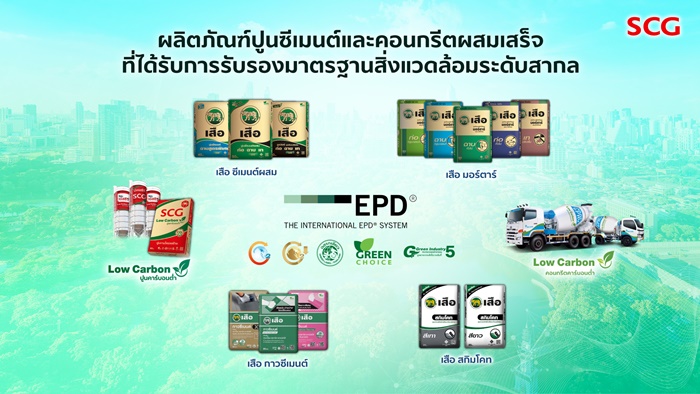 สำหรับผลิตภัณฑ์ปูนซีเมนต์ เอสซีจี ยังได้รับการรับรองมาตรฐานสิ่งแวดล้อมระดับสากล (Environmental Product Declaration – EPD) ในทุกกลุ่มผลิตภัณฑ์ โดยเฉพาะผลิตภัณฑ์ปูนซีเมนต์สำเร็จรูปเสือมอร์ตาร์ ถือเป็นรายแรก ครอบคลุมปูนมอร์ตาร์ 10 ผลิตภัณฑ์ ปูนซีเมนต์เอสซีจีและเสือ รวม 8 ผลิตภัณฑ์ และคอนกรีตผสมเสร็จซีแพค 27 ผลิตภัณฑ์ (คอนกรีตผสมเสร็จ จะได้รับการรับรองในเดือน พ.ย. 2567)