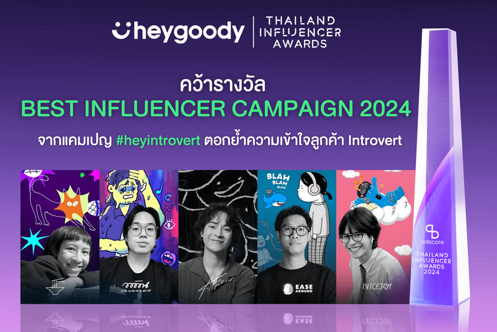 heygoody แพลตฟอร์มนายหน้าประกันดิจิทัล บริหารโดย บริษัท เงินติดล้อ จำกัด (มหาชน) หรือ TIDLOR คว้ารางวัลชนะเลิศในสาขา Best Financial & Investment Influencer Campaign จาก Thailand Influencer Awards 2024 by Tellscore เวทีที่มอบรางวัลให้แก่ผู้ทรงอิทธิพลทางความคิดและแบรนด์ชั้นนำทั่วประเทศที่สร้างสรรค์ผลงานโดดเด่นในช่องทางดิจิทัล ซึ่งรางวัลนี้เป็นอีกหนึ่งเครื่องยืนยันความสำเร็จของแคมเปญ #heyintrovert ที่สะท้อนถึงความเข้าใจอย่างลึกซึ้งต่อลูกค้ากลุ่ม Introvert ได้เป็นอย่างดี