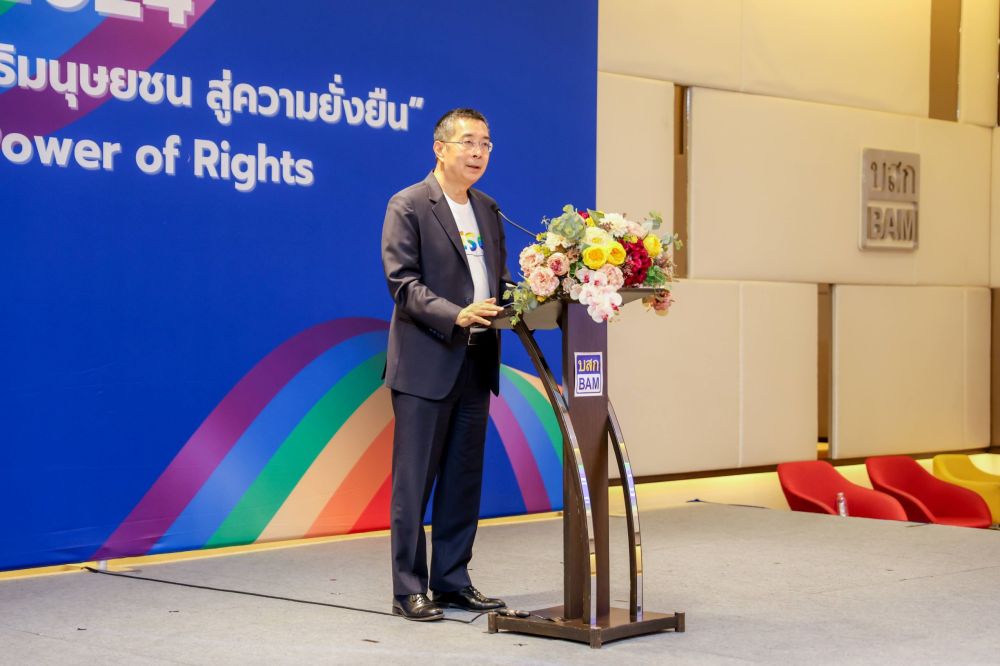นายบัณฑิต อนันตมงคล ประธานเจ้าหน้าที่บริหาร บริษัทบริหารสินทรัพย์ กรุงเทพพาณิชย์ จำกัด (มหาชน) กล่าวถึงวัตถุประสงค์ในการจัดงานครั้งนี้ เพื่อเป็นการตอกย้ำจุดยืนความสำคัญของการขับเคลื่อนองค์กรให้เติบโตอย่างยั่งยืน ซึ่ง BAM ได้บูรณาการเรื่องสิทธิมนุษยชนเข้าไปเป็นส่วนหนึ่งของกระบวนการดำเนินงานทางธุรกิจ โดยคำนึงถึงผู้มีส่วนได้เสียที่เกี่ยวข้อง อาทิ พนักงาน ผู้ถือหุ้น คู่ค้า สังคมและชุมชน