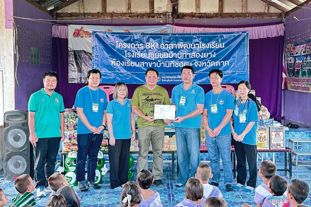 บริษัท กรุงเทพประกันภัย จำกัด (มหาชน) ร่วมกับมูลนิธิกรุงเทพประกันภัย จัดโครงการ BKI อาสาพัฒนาโรงเรียน โดยมีนายเชาวฤทธิ์ นนท์คำวงค์ รองผู้จัดการมูลนิธิกรุงเทพประกันภัย นำพนักงานจิตอาสาของบริษัทฯ 30 คน ร่วมทำกิจกรรมพัฒนาโรงเรียนชุมชนบ้านท่าสองยาง ห้องเรียนสาขาบ้านทีชอแม จังหวัดตาก โดยการทาสีอาคาร ปรับปรุงอาคารเรียนและห้องน้ำ ปรับปรุงภูมิทัศน์พื้นที่บริเวณโรงเรียน ปลูกต้นไม้ ปลูกพืชผักสวนครัวเพื่อนำมาเป็นวัตถุดิบในการประกอบอาหารสำหรับนักเรียน ทำกิจกรรมสันทนาการ พร้อมจัดเลี้ยงอาหารเช้าและอาหารกลางวันให้แก่น้องๆ นักเรียน ณ โรงเรียนชุมชนบ้านท่าสองยาง ห้องเรียนสาขาบ้านทีชอแม จังหวัดตาก เมื่อเร็วๆ นี้