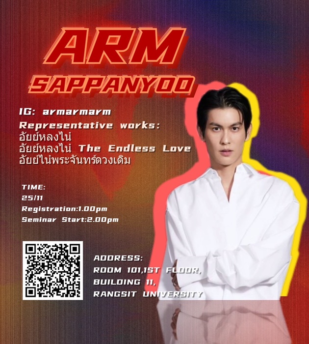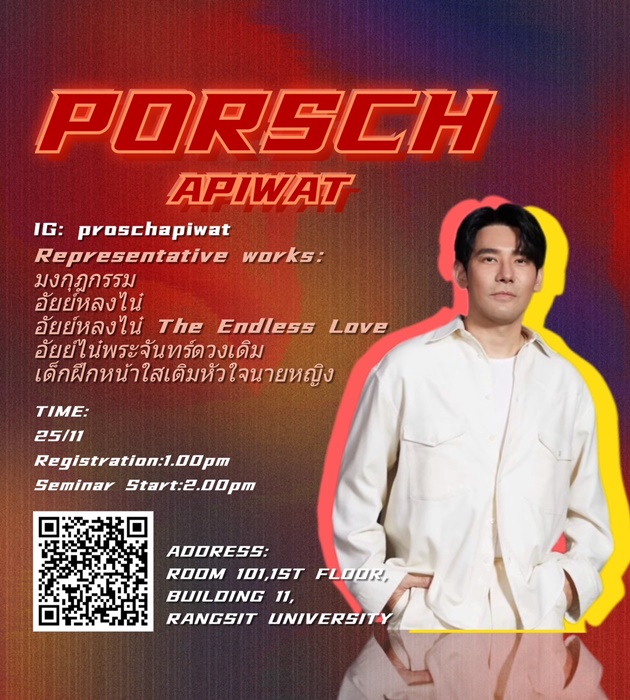 ทั้งนี้ ในการบรรยายได้รับเกียรติจากนักแสดงซีรีส์ และตัวแทนคนรุ่นใหม่ อาทิ พอร์ช – อภิวัฒน์ อภิวัฒน์เสรี อาม-สัพพัญญู ปนาทกุล ปลายฟ้า เคียวกะ โชติรัตน์ กัน ฐปนวัฒน์ แก้วบำรุง เป็นต้น สำหรับผู้ที่สนใจสามารถสอบถามรายละเอียดเพิ่มเติมได้ที่ Facebook Fanpage: RIC CommArts