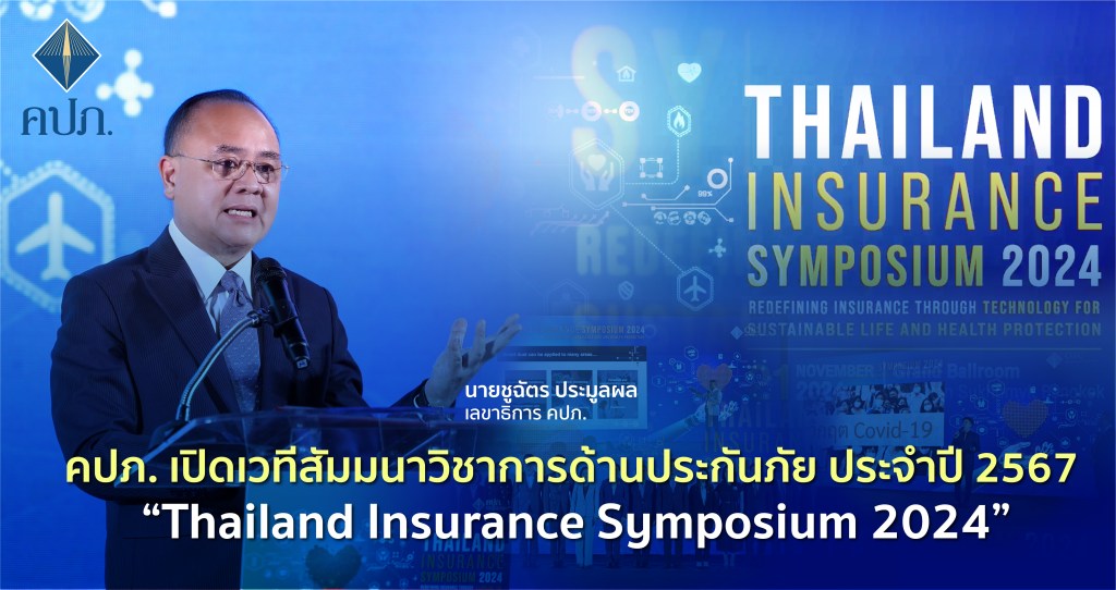 นายชูฉัตร ประมูลผล เลขาธิการคณะกรรมการกำกับและส่งเสริมการประกอบธุรกิจประกันภัย (เลขาธิการ คปภ.)เป็นประธานเปิดเวทีสัมมนาวิชาการด้านการประกันภัย ประจำปี 2567 หรือ Thailand Insurance Symposium 2024