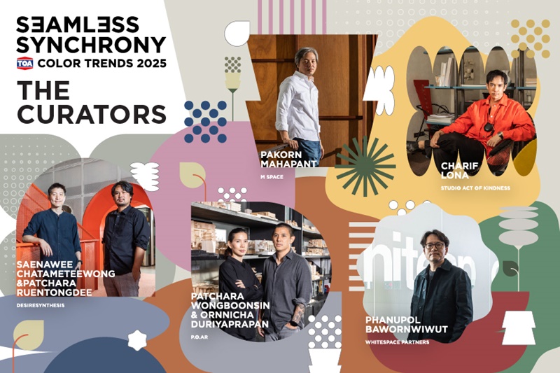 TOA ได้รับแรงบันดาลใจในการสร้างสรรค์เทรนด์สีจากสถาปนิก นักออกแบบชั้นนำของไทย ในการคิดค้นเทรนด์สีใหม่ 2025 เพื่อคนรักบ้านและที่อยู่อาศัย สอดรับกับเทรนด์รักษ์โลกอย่างยั่งยืน ประกอบด้วยคุณเศณวี ชาตะเมธีวงศ์ – คุณพชร เรือนทองดี DIRECTOR & CO-FOUNDER จาก DesireSynthesis คุณภากร มหพันธ์ ARCHITECT DESIGN DIRECTOR จาก M Space คุณพัชระ วงศ์บุญสิน – คุณอรณิชา ดุริยะประพันธ์ ARCHITECT & CO-FOUNDER จาก P.O.AR คุณชารีฟ ลอนา DESIGN DIRECTOR / FOUNDER จาก Studio Act of Kindness และ คุณภาณุภณ บวรวิวุฒิ DESIGN DIRECTOR จาก Whitespace