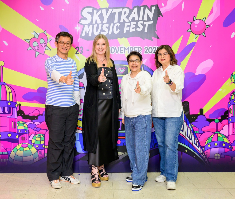 กรุงไทย-แอกซ่า ประกันชีวิต นำโดย คุณแซลลี่ โอฮาร่า ประธานเจ้าหน้าที่บริหาร บริษัท แอกซ่า ในภูมิภาคเอเชียอาคเนย์ และประเทศเกาหลีใต้ (คนที่ 2 จากซ้าย) และคุณบุปผาวดี โอวรารินท์ ประธานเจ้าหน้าที่บริหาร ฝ่ายทรัพยากรมนุษย์และภาพลักษณ์องค์กรและการสื่อสารองค์กร (คนที่ 2 จากขวา) พร้อมคณะผู้บริหารระดับสูง จับมือร่วมกับพันธมิตร VGI , BTS , Goodthings Happen , Zaap Word Entertainment, XOXO Entertainment , LOVEiS ENTERTAINMENT , Warner MusicThailand , Boxx Music และ What The Duck Music และผู้สนับสนุน ยกระดับวัฒนธรรมดนตรีผ่านกิจกรรม ‘SkyTrain Music Fest’ พลิกโฉมขบวนรถไฟฟ้าเป็นคอนเสิร์ตรูปแบบใหม่ครั้งแรกในประเทศไทย ดึงศิลปิน T-Pop ชั้นนำ อาทิ นนท์-ธนนท์, 4EVE, ATLAS, Bowkylion และศิลปินอื่นๆอีกมากมาย มาร่วมสร้างเสียงเพลงบนขบวน BTS เพื่อมอบประสบการณ์ที่สอดคล้องกับไลฟ์สไตล์อันหลากหลายของลูกค้าที่ไม่เหมือนใคร