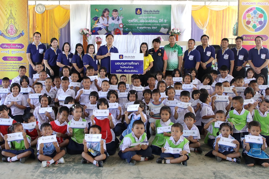 สำหรับ โครงการ “สุขที่ให้…เพื่อน้องได้เรียน” บริษัทฯ ดำเนินการอย่างต่อเนื่องเป็นปีที่ 5 โดยมีความมุ่งหวังในการลดความเหลื่อมล้ำทางการศึกษา เพื่อให้เด็กและเยาวชนสามารถพัฒนาศักยภาพการเรียนรู้ของตนเองได้อย่างเต็มที่และมีความสุข และมีส่วนร่วมในการสร้างสรรค์สังคมและประเทศชาติต่อไปในอนาคต ทั้งนี้ ภายในปี 2567 บริษัทฯ ร่วมกับตัวแทน/นายหน้าประกันวินาศภัย ศูนย์ซ่อมมาตรฐาน และพันธมิตรทางธุรกิจ ได้ดำเนินการมอบทุนการศึกษาแล้วในพื้นที่ภาคเหนือ ภาคใต้ ภาคตะวันออกเฉียงเหนือ และล่าสุดที่ภาคตะวันออก รวมทั้งหมด 862 ทุน เป็นเงินทั้งสิ้น 1,218,655 บาท