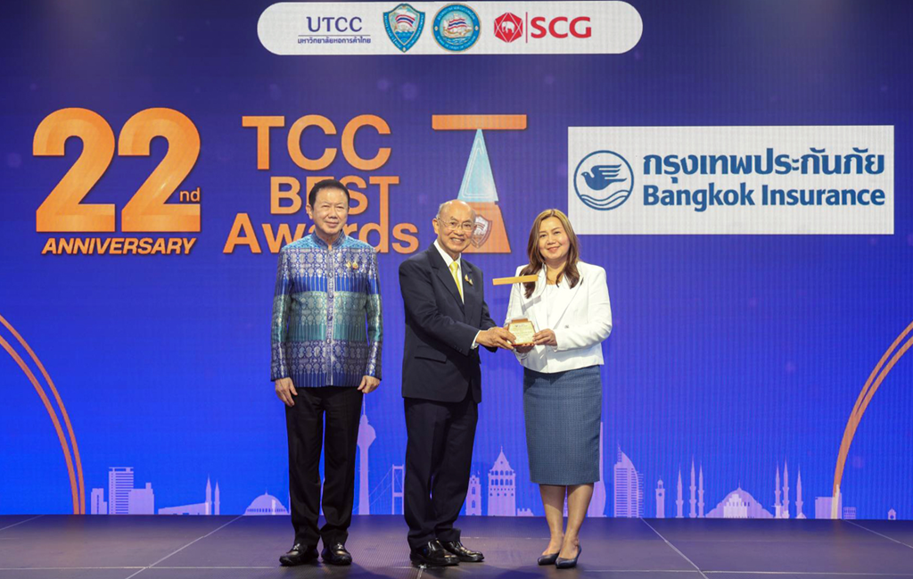 บริษัท กรุงเทพประกันภัย จำกัด (มหาชน) โดยนางสาวปวีณา จูชวน (ขวา) ผู้ช่วยกรรมการผู้อำนวยการใหญ่ เป็นผู้แทนบริษัทฯ รับรางวัลจรรยาบรรณดีเด่น หอการค้าไทย ปีที่ 22 ประจำปี 2567 จากศาสตราจารย์เกียรติคุณ นายแพทย์ เกษม วัฒนชัย (กลาง) องคมนตรี โดยมีนายสนั่น อังอุบลกุล (ซ้าย) ประธานกรรมการหอการค้าไทยและสภาหอการค้าแห่งประเทศไทย ร่วมเป็นเกียรติในงานประกาศเกียรติคุณจรรยาบรรณดีเด่น หอการค้าไทย ประจำปี 2567 (The Thai Chamber of Commerce Business Ethics Standard Test Awards: TCC Best Award 2024) ณ มหาวิทยาลัยหอการค้าไทย กรุงเทพฯ เมื่อวันที่ 12 ธันวาคม 2567