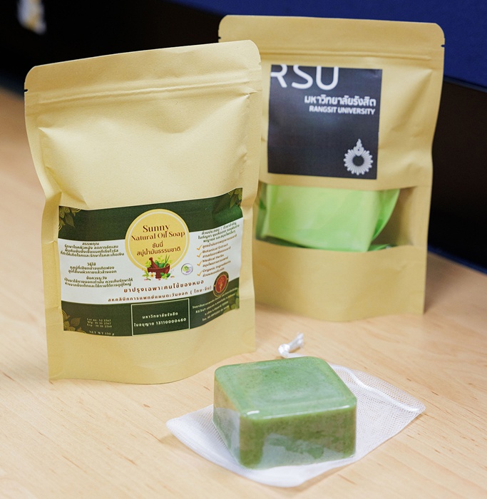 “จากปัญหาดังกล่าว อาจารย์และทีมนักวิจัย จึงได้ร่วมกันพัฒนา ซันนี่ สบู่น้ำมันธรรมชาติ ซี่งประกอบด้วยตัวยาหลัก ๆ เช่น สารสกัดจากกัญชาออร์แกนิค(ใบ) ทองพันชั่ง พญายอ คันทรง ชุมเห็ดเทศ ฯลฯ ซึ่งเป็นสบู่ที่ปลอดภัยจากสารเคมี จึงทำให้ Sunny สบู่น้ำมันธรรมชาติ มีประสิทธิภาพและประสิทธิผลในการรักษาโรคผิวหนัง โรคผิวหนังเรื้อรัง และโรคสะเก็ดเงิน ช่วยลดการอักเสบ ผื่นคัน บริเวณผิวหนัง ฯลฯ ซึ่งนับเป็นจุดเด่นของสบู่ดังกล่าว กอปรกับ ในปี 2567 เป็นปีแห่งการก้าวเข้าสู่ทศวรรษที่ 3 ของการก่อตั้งวิทยาลัยการแพทย์แผนตะวันออก มหาวิทยาลัยรังสิต โดยอาจารย์ปานเทพ พัวพงษ์พันธ์ คณบดีวิทยาลัยการแพทย์แผนตะวันออก ได้กำหนดวิสัยทัศน์และหลักการ ในการบูรณาการ ภูมิปัญญาการแพทย์แผนตะวันออก ทั้งมิติทางด้านวิชาการ คลินิก และการบริการวิชาการแก่สังคม ให้สอดคล้องกับระบบสาธารณสุขของประเทศจึงได้มีดำริให้คณาจารย์ของวิทยาลัยฯ ร่วมกันพัฒนาผลิตภัณฑ์สมุนไพรประเภทต่าง ๆ เพื่อนำออกสู่ตลาดผลิตภัณฑ์สมุนไพร ทั้งในประเทศและต่างประเทศ โดยในปีการศึกษา 2567 ได้เปิดผลิตภัณฑ์นำร่องเป็นผลิตภัณฑ์ยารักษาโรคผิวหนังเรื้อรัง และโรคสะเก็ดเงิน เพื่อเปิดโอกาสให้ผู้ที่เป็น โรคผิวหนังเรื้อรังและโรคสะเก็ดเงิน ได้มีโอกาสเลือกใช้ผลิตภัณฑ์จากธรรมชาติให้มากขึ้น ปลอดภัยจากสารเคมี และยังช่วยลดการนำเข้ายารักษาโรคผิวหนังเรื้อรัง/โรคสะเก็ดเงินจากต่างประเทศ เพื่อให้สอดคล้องกับระบบสาธารณสุขของประเทศไทยในปัจจุบัน