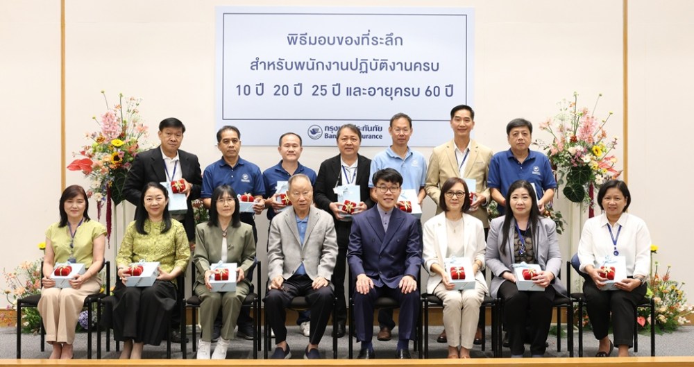 บริษัท กรุงเทพประกันภัย จำกัด (มหาชน) จัดพิธีมอบของที่ระลึกสำหรับพนักงานที่ปฏิบัติงานครบ 10 ปี 20 ปี 25 ปี และพนักงานเกษียณอายุ โดยมีคุณชัย โสภณพนิช ประธานกรรมการ และดร.อภิสิทธิ์ อนันตนาถรัตน ประธานคณะผู้บริหารและกรรมการผู้อำนวยการใหญ่ ร่วมเป็นประธานในพิธีมอบของที่ระลึกให้แก่พนักงานที่ปฏิบัติงานครบอายุงานดังกล่าว เพื่อเป็นเกียรติแห่งความภาคภูมิใจในความมุ่งมั่น อดทน และทุ่มเทความรู้ความสามารถในการปฏิบัติงานให้องค์กรอย่างเต็มที่มาอย่างต่อเนื่องยาวนาน และเพื่อเป็นขวัญกำลังใจในการปฏิบัติงาน ณ อาคารกรุงเทพประกันภัย ถนนสาทรใต้ เมื่อเร็วๆ นี้