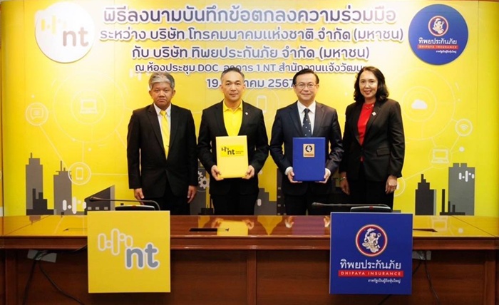 บริษัท ทิพยประกันภัย จำกัด (มหาชน) ร่วมกับ บริษัท โทรคมนาคมแห่งชาติ จำกัด (มหาชน) ลงนามในบันทึกข้อตกลงความร่วมมือเป็นพันธมิตรทางธุรกิจ (MOU) ในการพัฒนาผลิตภัณฑ์ และบริการ เพื่อตอบสนองความต้องการของกลุ่มลูกค้ายุคดิจิทัล ผ่านช่องทางต่างๆ ของ NT เพื่อเพิ่มสิทธิประโยชน์ให้แก่กลุ่มลูกค้า และพนักงานของ NT